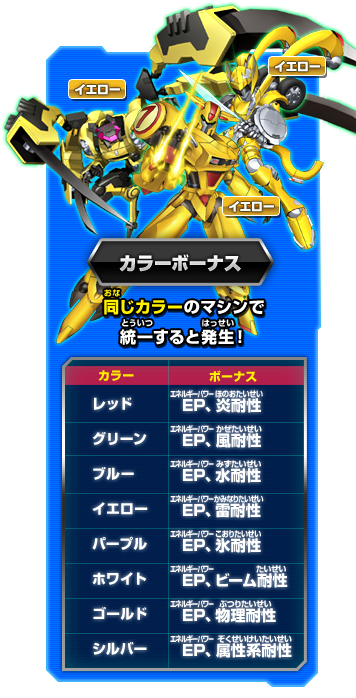 カラーボーナス 同じカラーのマシンで統一すると発生!